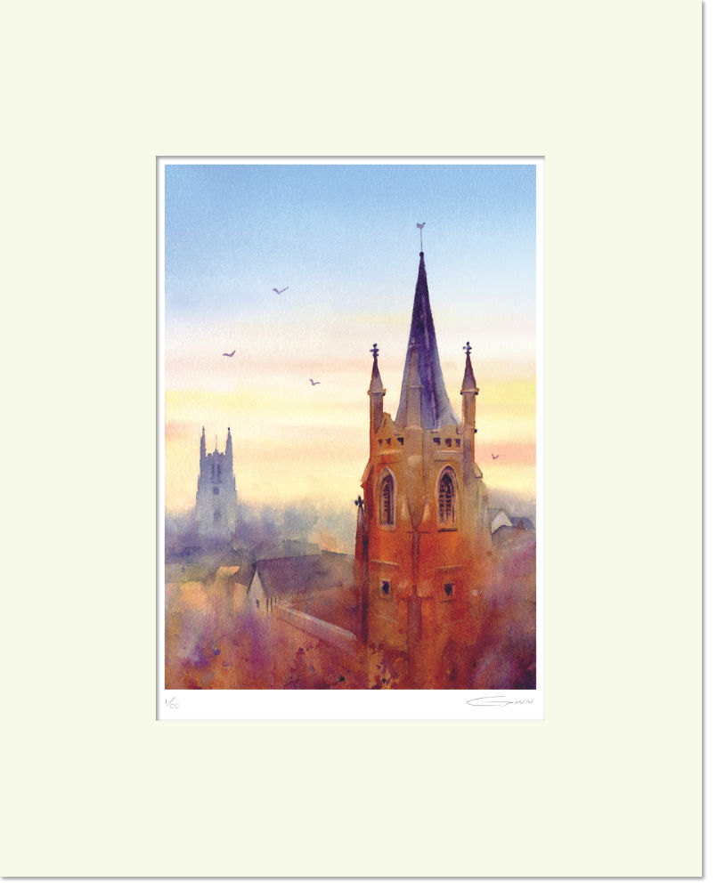 Signed, Limited Edition Print Sunrise over The Crown & Cushion, Great Gransden